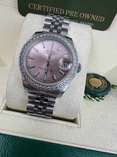 JUBILEE BRACELET  STONE SET CZ BEZEL, MATCHING FACTORY PINKY  DIAL,
