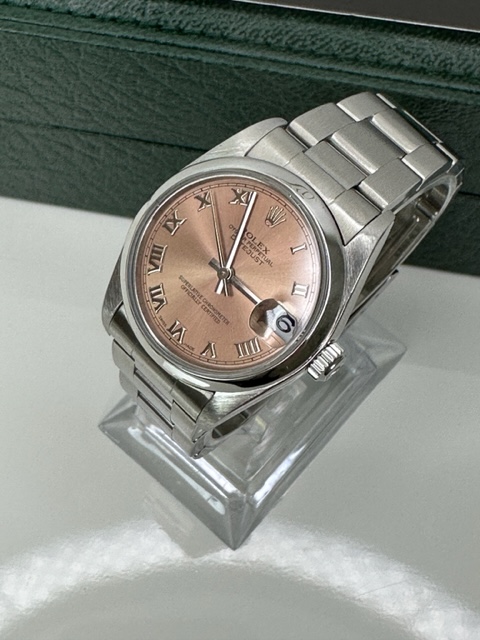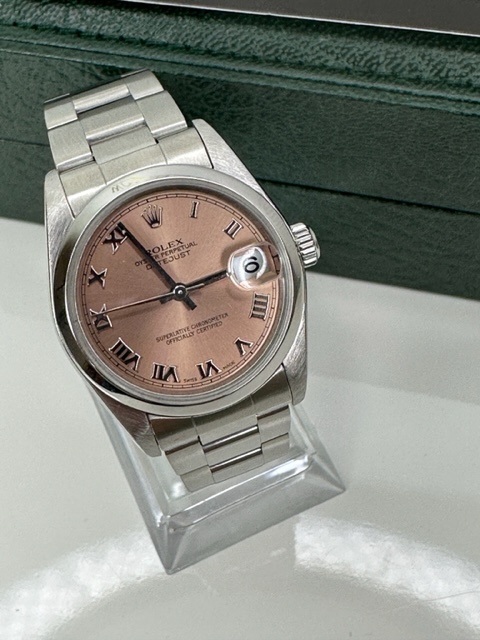 OYSTER BRACELET SMOOTH BEZEL OR OPTIONAL STONE SET BEZEL, ROLEX FACTORY PINK ROLEX SALMON ROMAN DIAL,