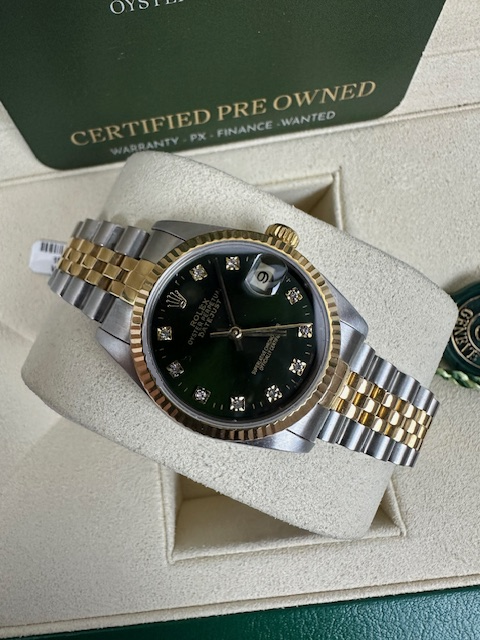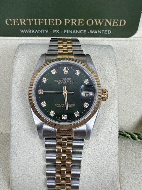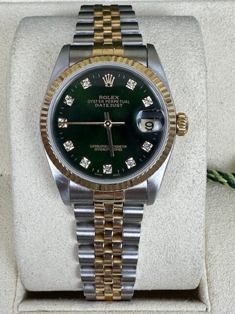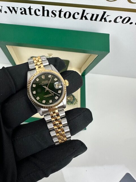 JUBILEE BRACELET 18K FLUTED BEZEL , GREEN DIAL, STUNNING