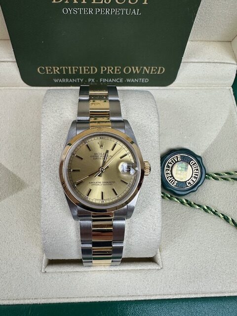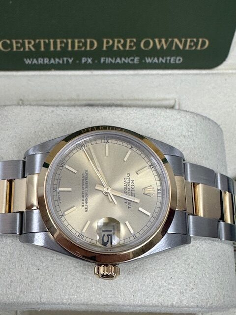ROLEX DATEJUST 31MM 18K GOLD AND STEEL MODEL , COMES FULLY PRESENTED WITH BOX NATIONAL CERTIFICATES ID CARDS TAGS BOOKLETS ETC , STUNNING CONDITION