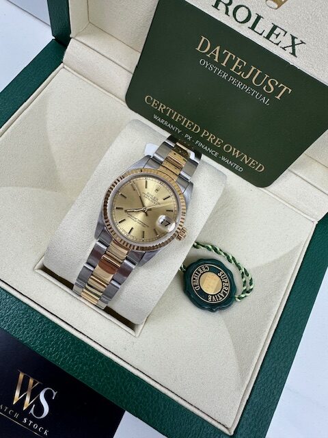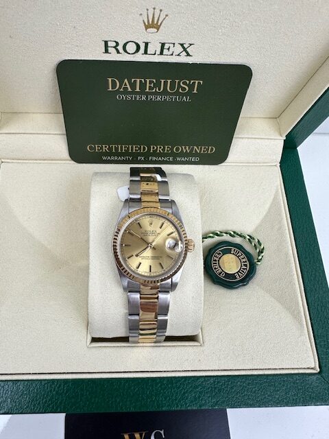 ROLEX DATEJUST 31MM 18K GOLD AND STEEL MODEL , COMES FULLY PRESENTED WITH BOX NATIONAL CERTIFICATES ID CARDS TAGS BOOKLETS ETC , STUNNING CONDITION