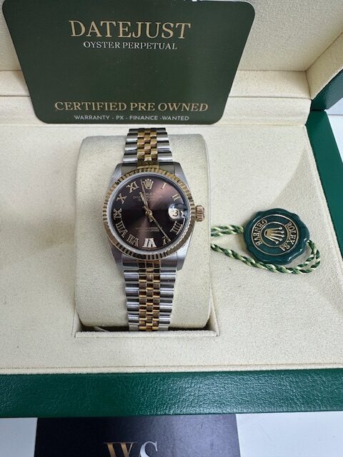 ROLEX DATEJUST 31MM MIDSIZE 18K GOLD AND STEEL MODEL , COMES FULLY PRESENTED WITH BOX NATIONAL CERTIFICATES ID CARDS TAGS BOOKLETS ETC , STUNNING CONDITION