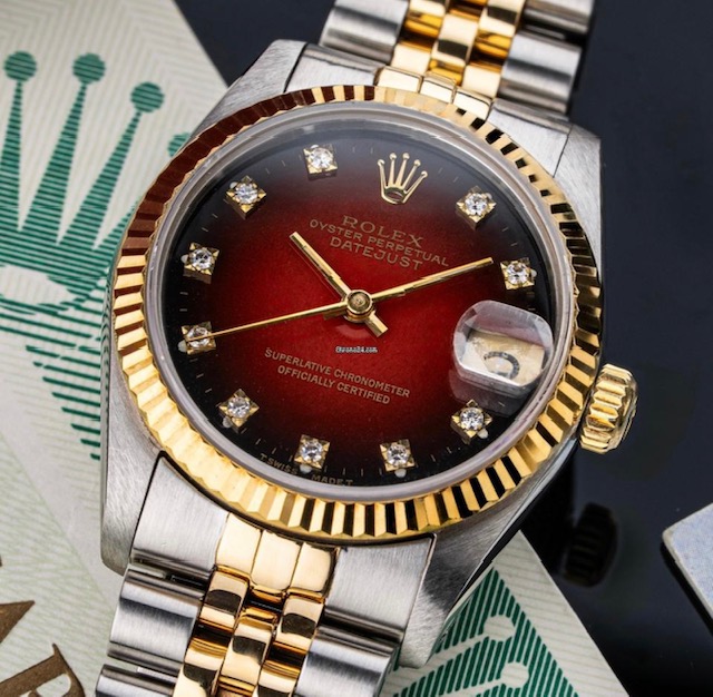 JUBILEE BRACELET FLUTED OR OPTIONAL STONE SET BEZEL, FACTORY VIGNETTE DIAMOND DIAL,