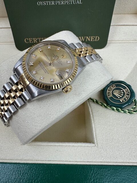 JUBILEE BRACELET ,COMES WITH A FLUTED 18K GOLD BEZEL JUBILEE CHAMPAGNE FACTORY DIAMOND DIAL, STUNNING WATCH