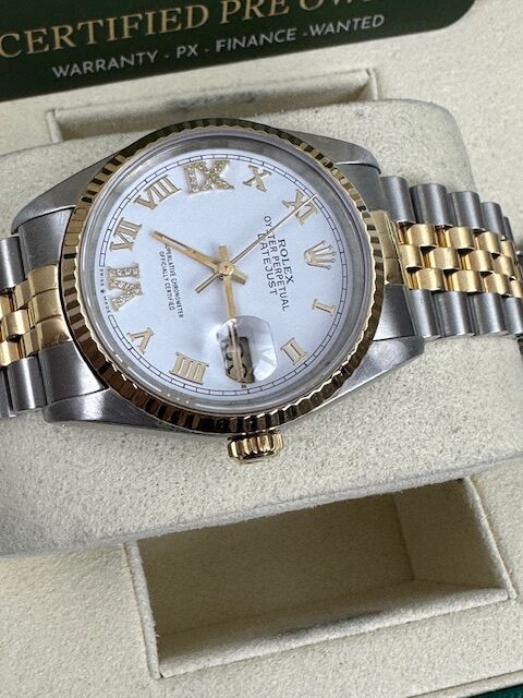 STUNNING CONDITION , A GENUINE ROLEX WATCH THAT HAS BEEN CHERISHED WITH A WHITE ROMAN DIAMOND CZ DIAL