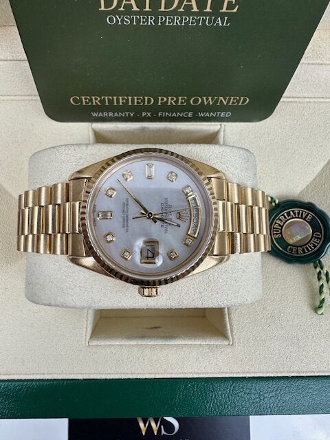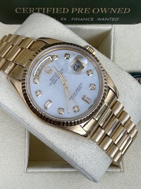 ROLEX DAYDATE 18038 18K 36mm, PRESIDENT BRACELET , STUNNING MOTHER OF PEARL DIAL. 18K FLUTED BEZEL