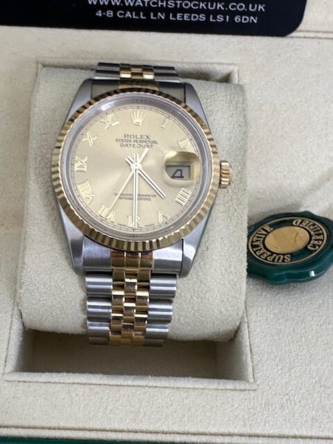ROLEX DATEJUST 16233 36MM , 18K AND STEEL 18K FLUTED BEZEL ON A JUBILEE BRACELET,