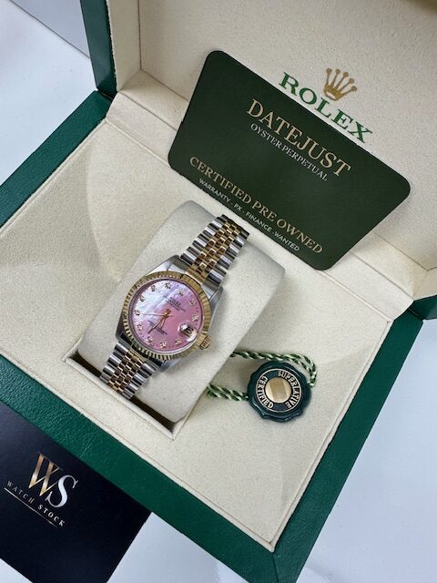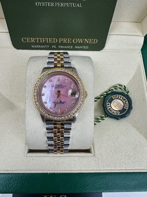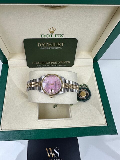 STUNNING CONDITION , A GENUINE ROLEX WATCH THAT HAS BEEN CHERISHED WITH A PINK MOTHER OF PEARL CUSTOM DIAL