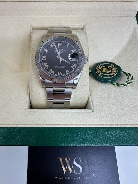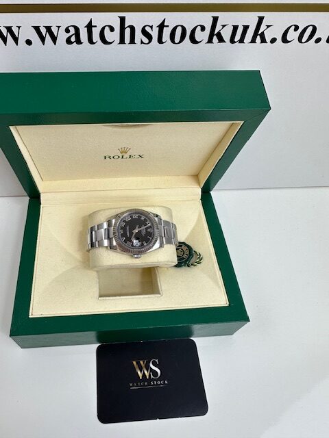 STUNNING CONDITION , A GENUINE ROLEX WATCH THAT HAS BEEN PRESENTED WITH THE FACTORY BLACK ROMAN DIAL AND A MATCHING FLUTED CUSTOM BEZEL