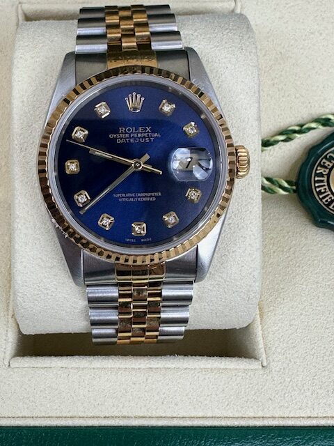 ROLEX DATEJUST 16233 36MM , 18K AND STEEL FLUTED BEZEL ON A JUBILEE BRACELET, WE HAVE QUITE A FEW OF THESE IN STOCK