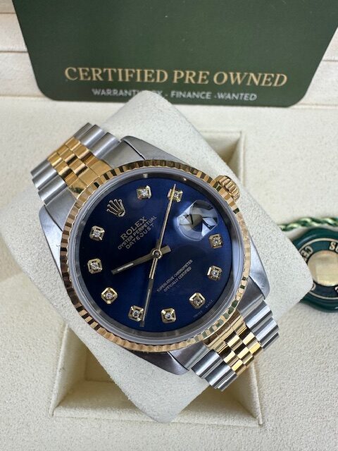 STUNNING CONDITION , A GENUINE ROLEX WATCH THAT HAS BEEN CHERISHED WITH A BLUE CUSTOM STONE SET DIAL