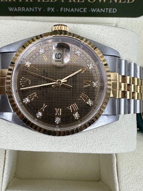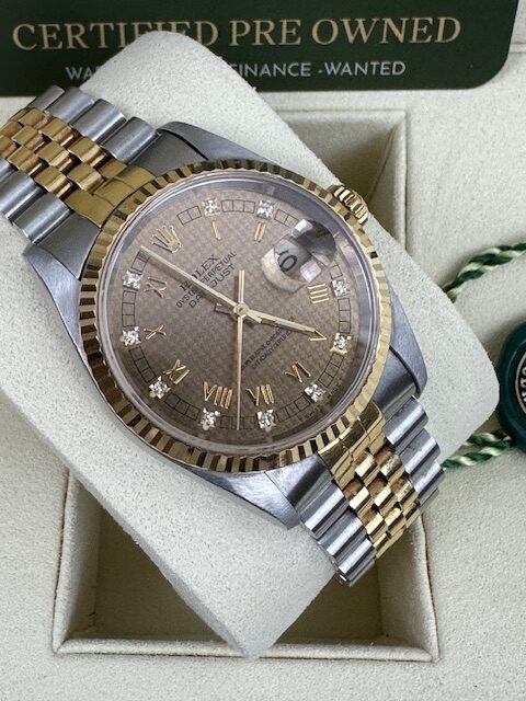 STUNNING CONDITION , A GENUINE ROLEX WATCH THAT HAS BEEN CHERISHED WITH THE RARE FACTORY HOUNDSTOOTH DIAMOND DIAL