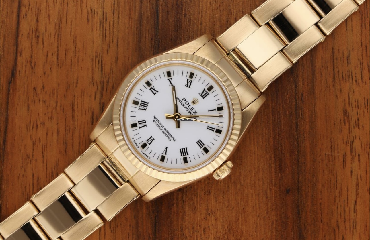 ROLEX MIDI FULL YELLOW GOLD OYSTER PERPETUAL 31mm, OYSTER BRACELET , STUNNING ROLEX BUCKLEEY WHITE DIAL , FLUTED BEZEL