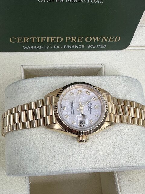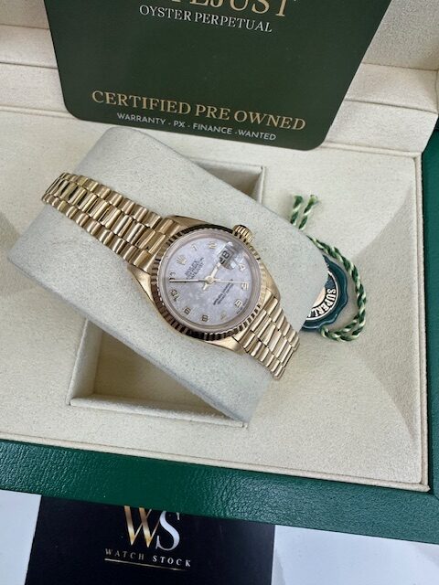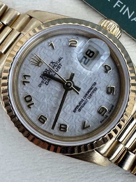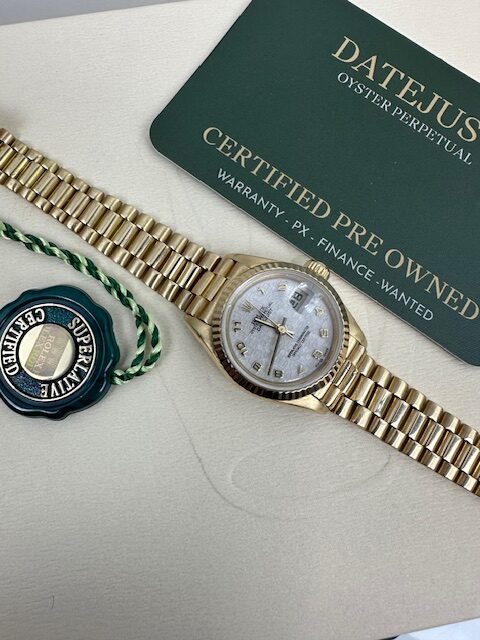 LADIES 69178 DATEJUST A SUPERB ROLEX FULL YELLOW GOLD ON A PRESIDENT BRACELET, ROLEX FACTORY JUBILEE DIAL, 26MM, COMES WITH FLUTED BEZEL OR VARIOUS STONE SET BEZELS OPTIONAL