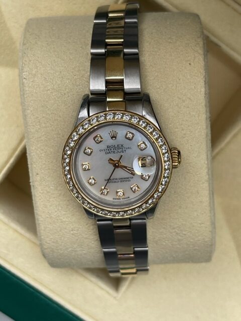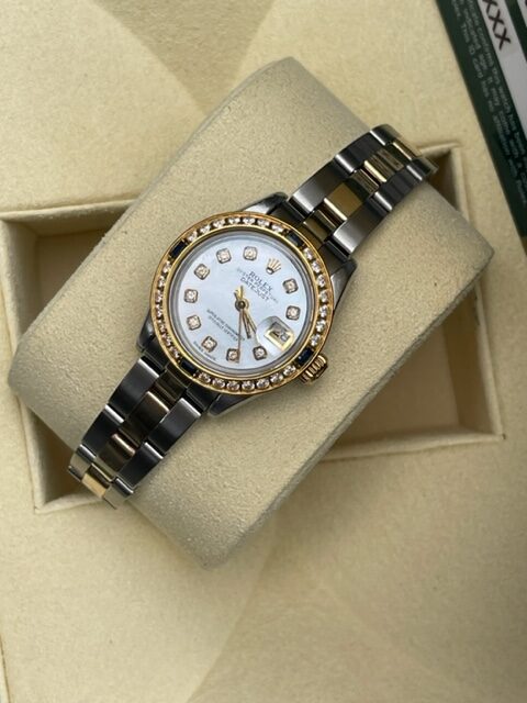 ROLEX DATEJUST 26MM , 69173 18K AND STEEL CHOICE OF CUSTOM STONE SET BEZELS ON A OYSTER BRACELET,