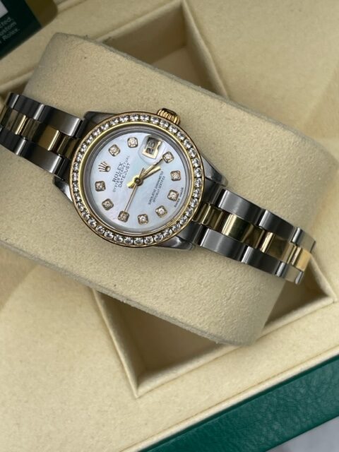 STUNNING CONDITION , A GENUINE ROLEX WATCH THAT HAS BEEN CHERISHED WITH THE MOTHER OF PEARL DIAMOND DIAL
