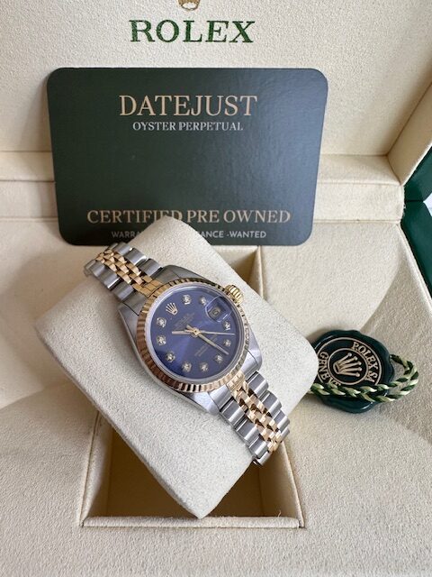 STUNNING CONDITION , A GENUINE ROLEX WATCH THAT HAS BEEN CHERISHED WITH THE BLUE STONE SET DIAL