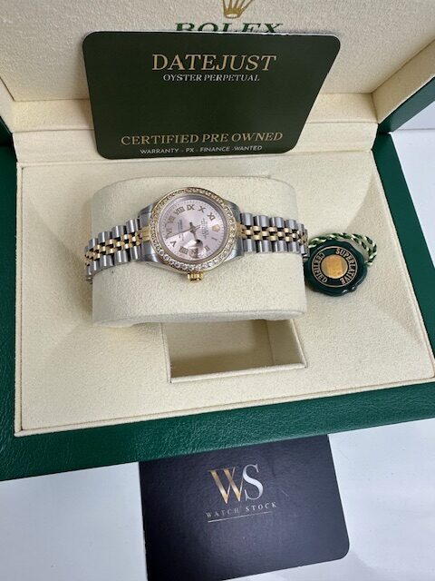 ROLEX DATEJUST 26MM , 69173 18K AND STEEL CUSTOM BEZEL ON A JUBILEE BRACELET,