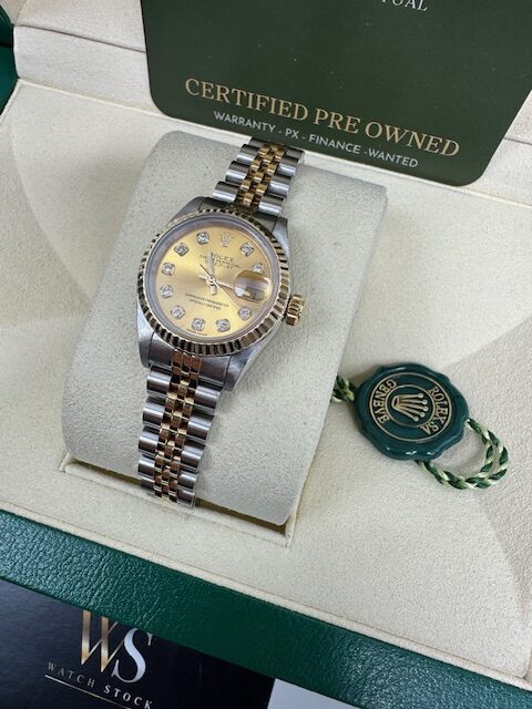 STUNNING CONDITION , A GENUINE ROLEX WATCH THAT HAS BEEN CHERISHED WITH THE CHAMPAGNE CUSTOM STONE DIAL