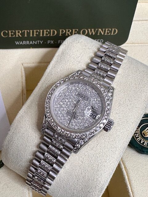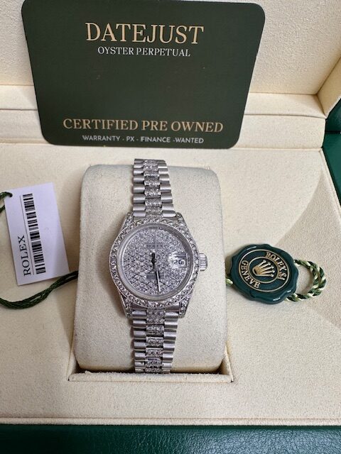 ROLEX CUSTOM DIAMOND SET DATEJUST 69179, PRESIDENT BRACELET , STUNNING PAVE DIAMOND DIAL , MATCHING DIAMOND BEZEL, SHOULDERS AND PRESIDENT DIAMOND BRACELET
